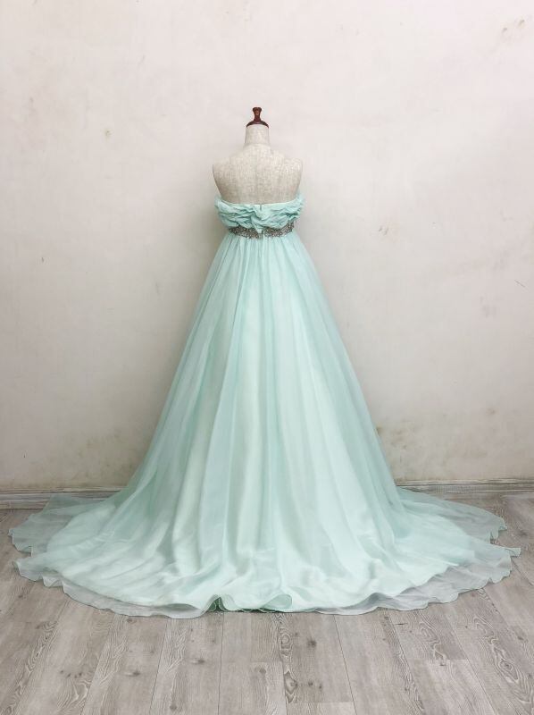 カラードレス ミントグリーン エンパイアライン ふんわりシフォン スレンダーライン