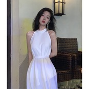 フランス風 ホワイト パーティードレス 細見えシルエット 高みせ 高級 高品質 ワンピース ミディアムドレス
