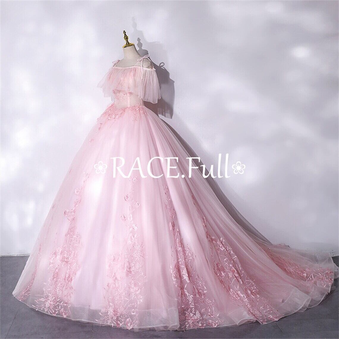 オーダーメイド 音楽会 チェリーピンク カラードレス キャミソール Aライン 編み上げ 華やかなトレーン