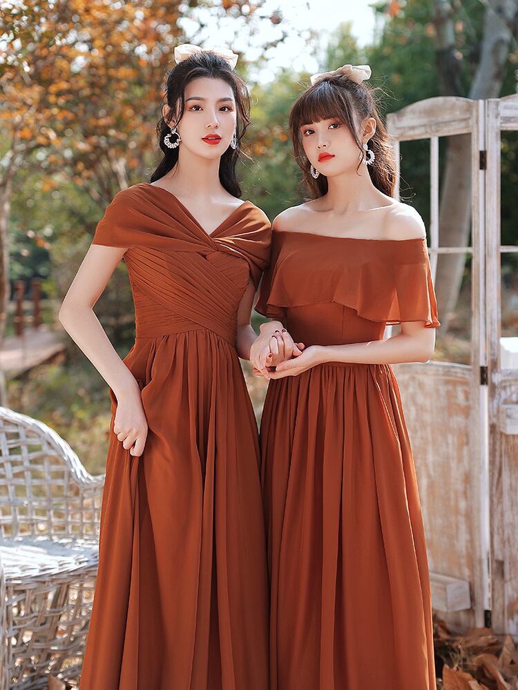 ブライズメイド テラコッタ色 エレガント オーダーメイド ふんわりシフォン 結婚式 編み上げ