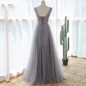 パーティードレス グレー ノースリーブ Vネックドレス 花嫁 編み上げ 演奏会