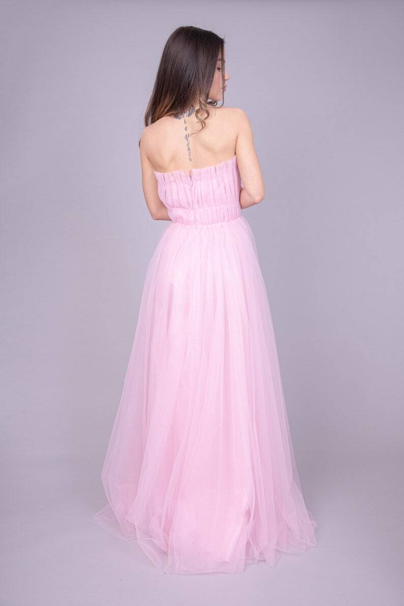 花嫁 カラードレス 薄ピンク ベアトップ ソフトチュール ファスナー 結婚式