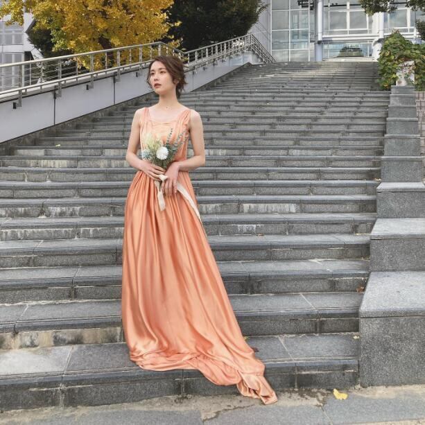 高品質! パーティードレス 薄シャンパンの色 エレガント 結婚式 ノースリーブ 音楽会