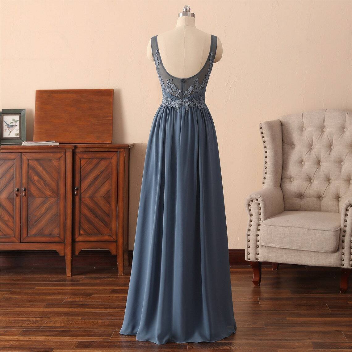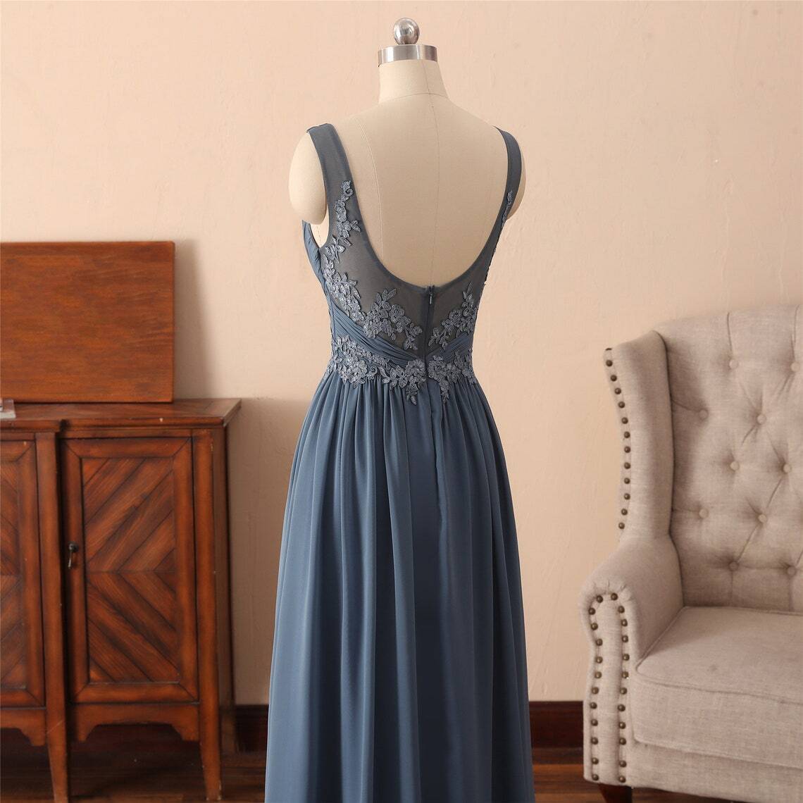 パーティードレス 薄青 花嫁 レース Vネック ノースリーブ エレガント 披露宴