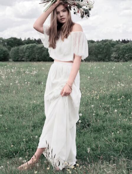 ボタニカル柄のドレス オフショルダー ツーピース 花嫁 ふんわりシフォン 二次会