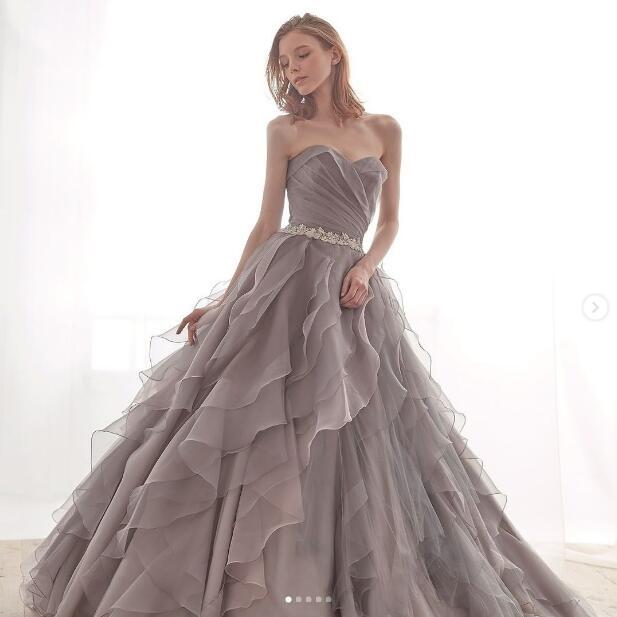 カラードレス 花嫁 プリンセスライン エレガント 華やかなトレーン 拳式 結婚式