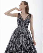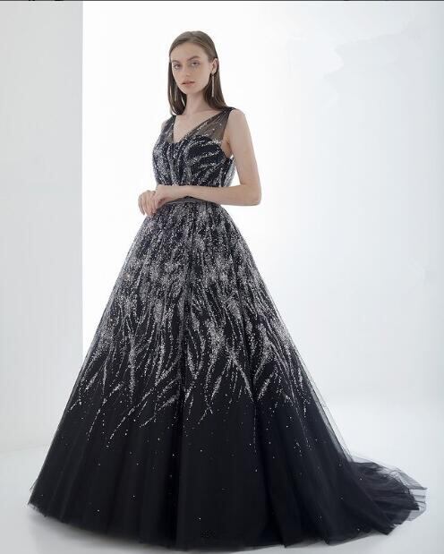 カラードレス 黒 花嫁 華やか Vネック Aライン 背中見せ 結婚式