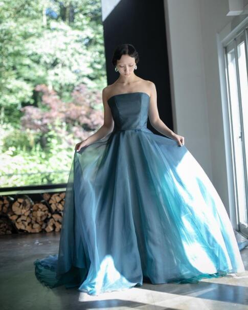 カラードレス ベアトップ 青 エレガント クラシカル 演奏会 トレーン