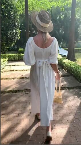 ワンピース ホワイト スレンダーライン 二次会 パフスリーブ 拳式