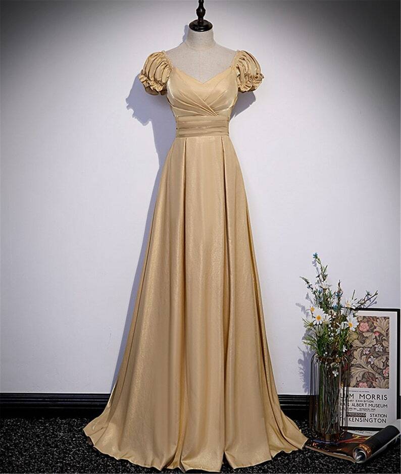イタリアサテン 花嫁 パフスリーブ パーティードレス シャンパン色 編み上げ 二次会