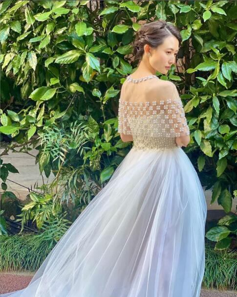 披露宴 ビーズ エレガント ウエディングドレス オフショルダー 花嫁 結婚式