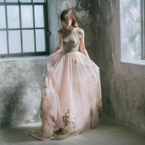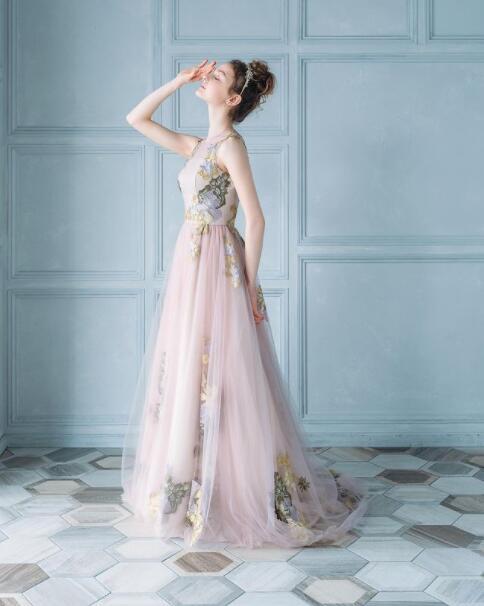 エレガント 花モチーフ 花嫁 ノースリーブ カラードレス 二次会