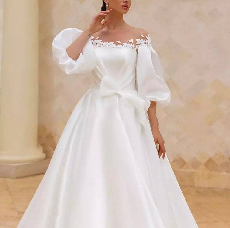 花嫁 エレガント 取り外し袖 パーティードレス Aライン 結婚式