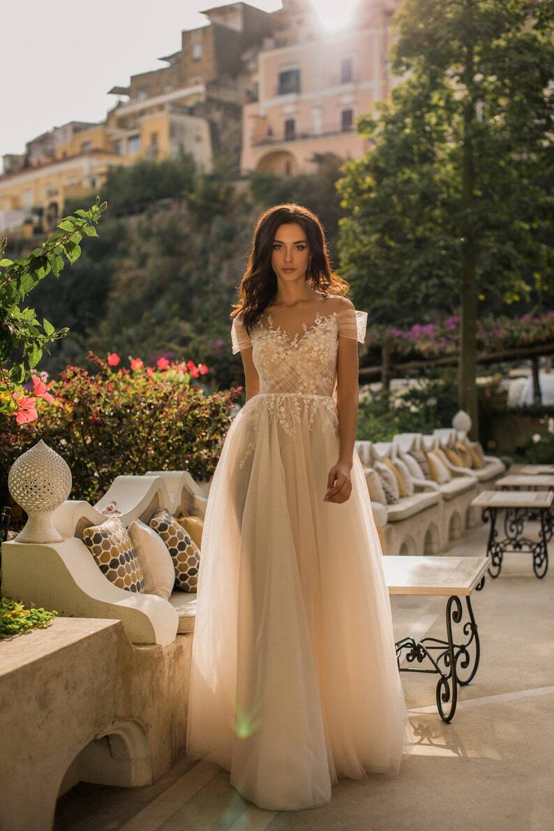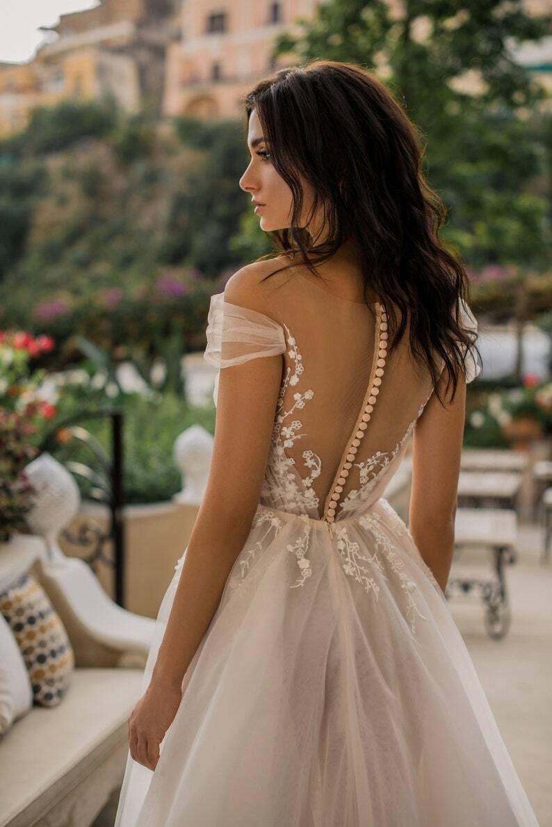 ウエディングドレス 花嫁 ボタニカル柄のドレス レース 可愛い 二次会
