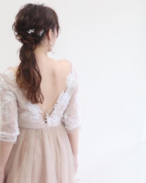 レース エレガント 花嫁 パーティードレス 背中見せ 披露宴/結婚式