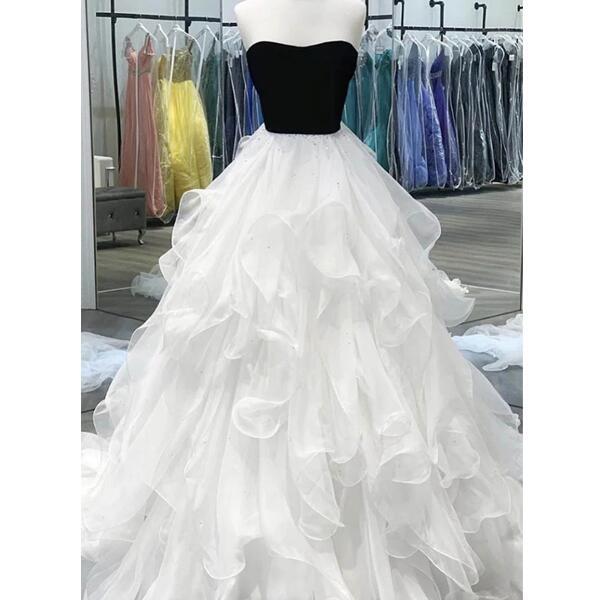 黒/ホワイト Aライン キャミソール 花嫁 エレガント 二次会/披露宴