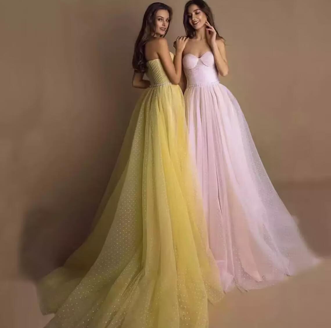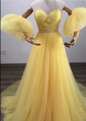 ソフトチュール 取り外し袖 カラードレス 黄色い/ピンク紫 二次会