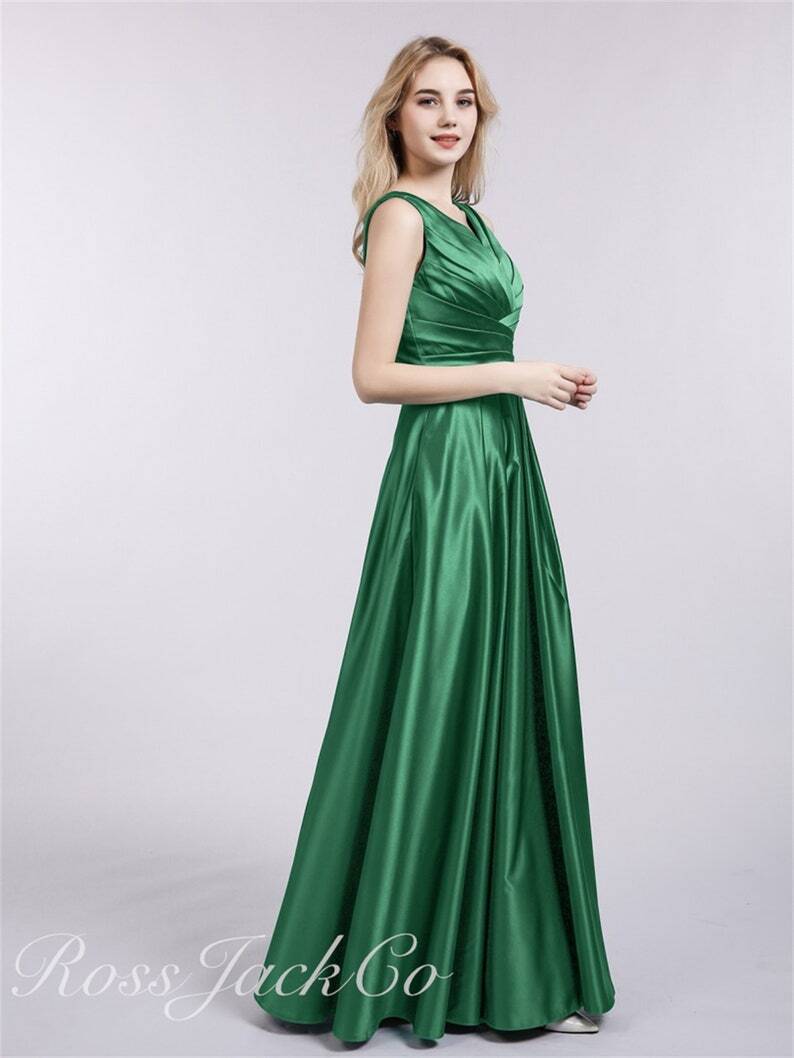 エレガント イタリアサテン 深めな緑 パーティードレス 可愛い 披露宴
