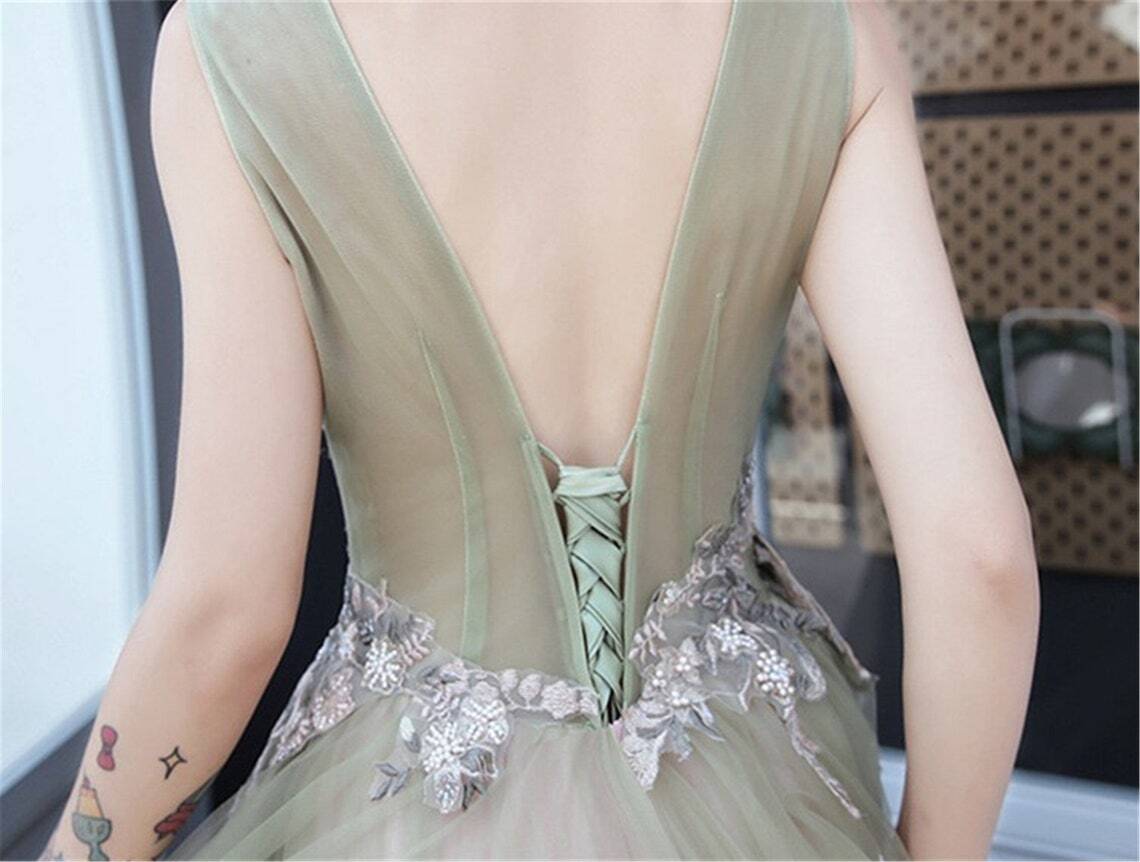 グリーン エレガント 花嫁 カラードレス レース 編み上げ 二次会