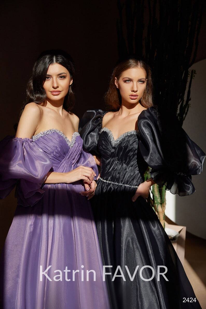 黑/紫/薄ピンク パーティードレス 取り外し袖 ベアトップ 花嫁 結婚式