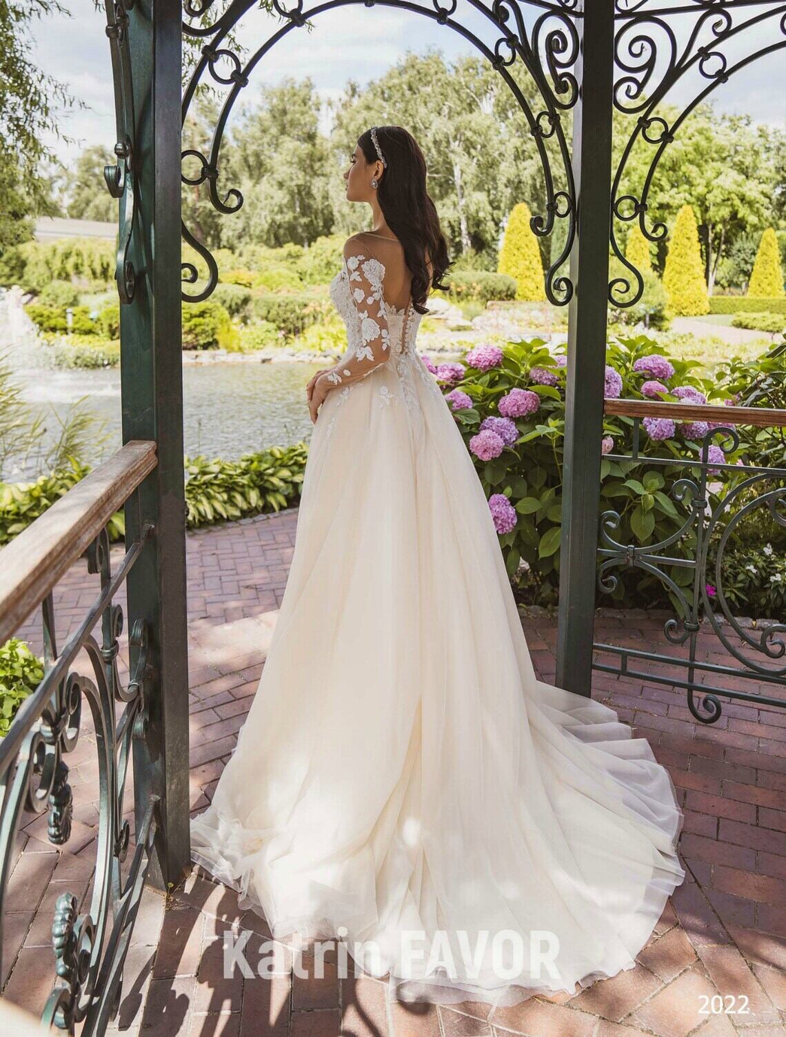 ウエディングドレス レース パール 長袖 エレガント 花嫁 トレーン 拳式 結婚式