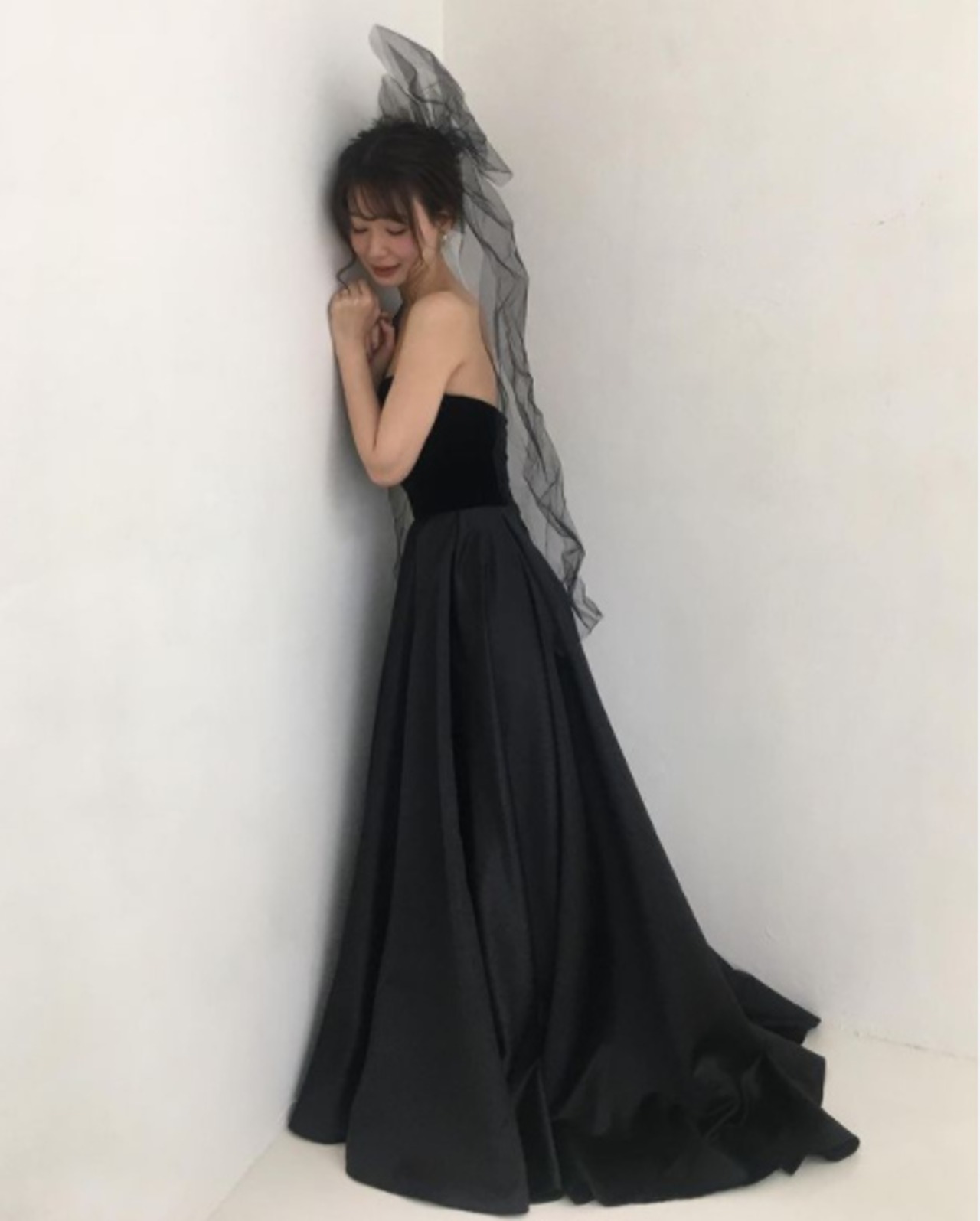 エレガント パーティードレス 黒 ベアトップ Aライン 可愛い 拳式