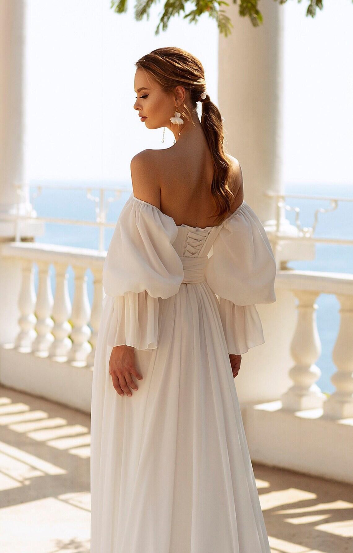 ふんわりシフォン ウエディングドレス エレガント オフショルダー 披露宴
