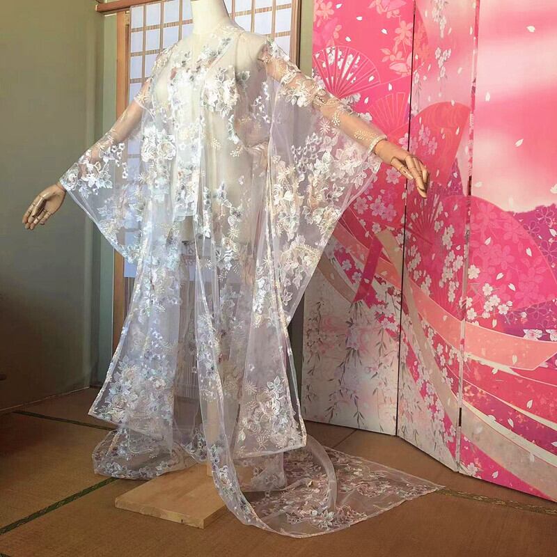 チュール打掛 オーガンジー打掛 着物 オーバードレス レース羽織 ウエディングドレス お色直し 刺繍 色変更可能 3D立体的な刺繍 うす衣