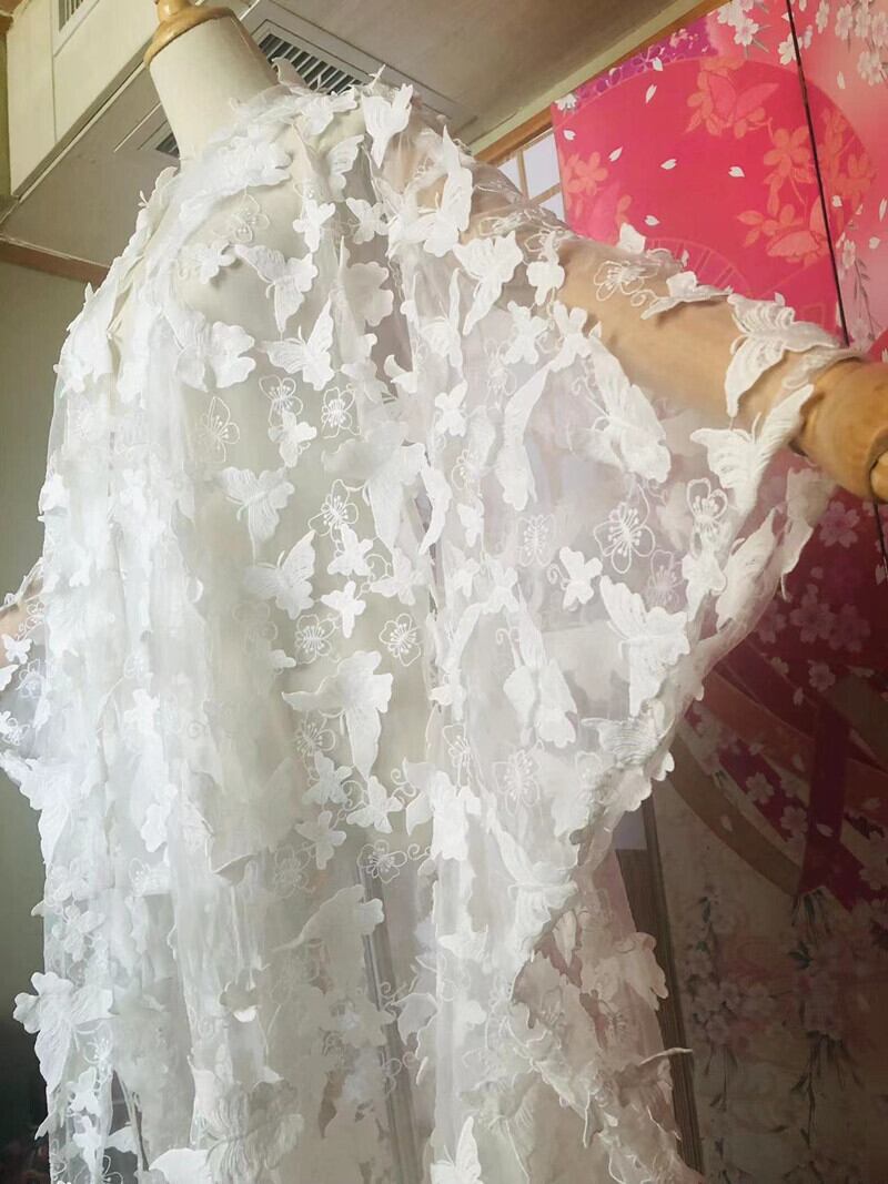 チュール打掛 オーガンジー打掛 着物 オーバードレス レース羽織 ウエディングドレス お色直し 刺繍 色変更可能 3D立体的な刺繍 うす衣