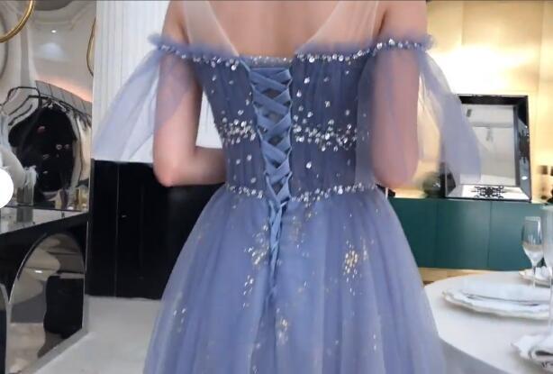 コンサートドレス キラキラスパンコール オフショルダー 薄青/赤 演奏会/音楽会