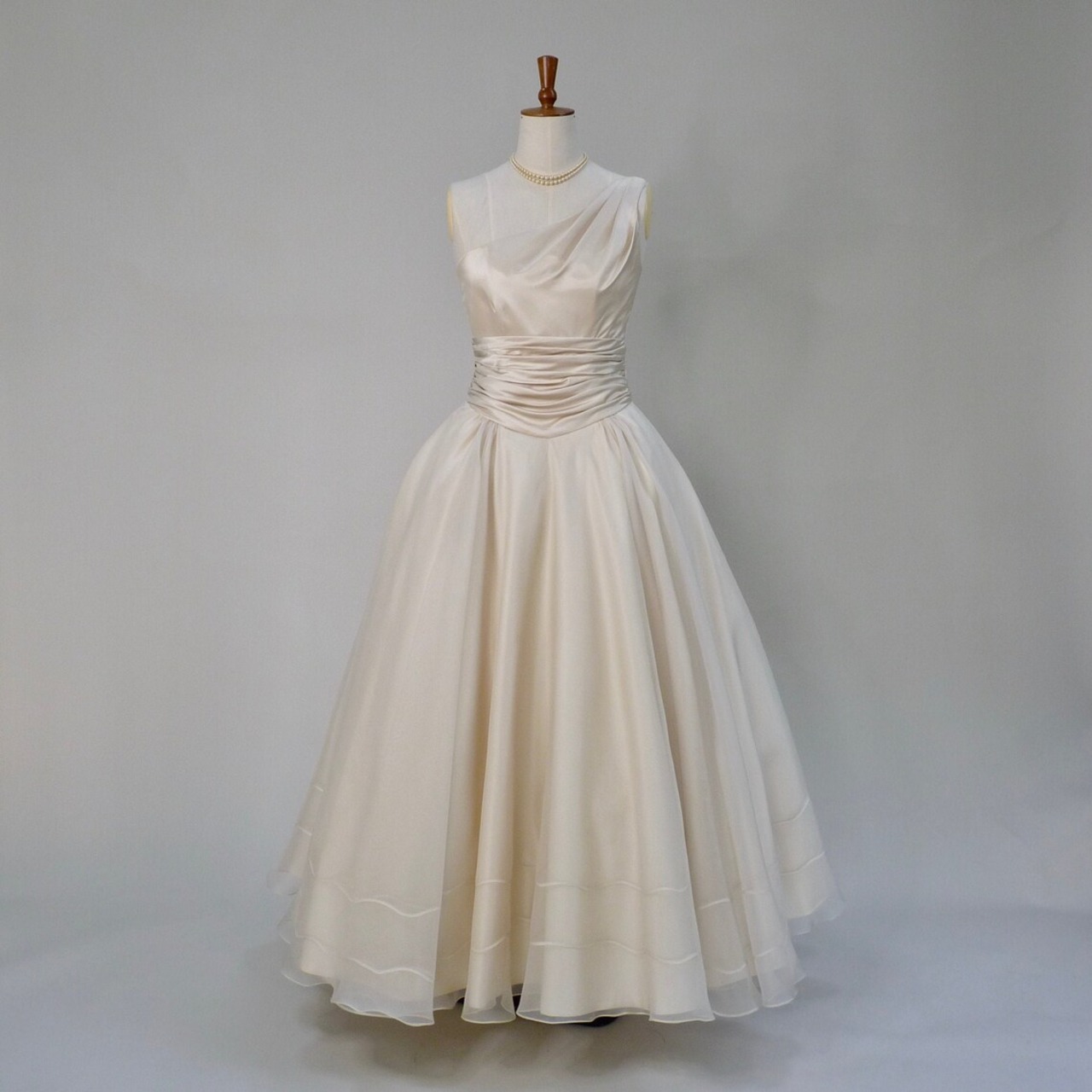パーティードレス ワンショルダー クラシカル ノースリーブ Aライン 可愛い 結婚式/披露宴