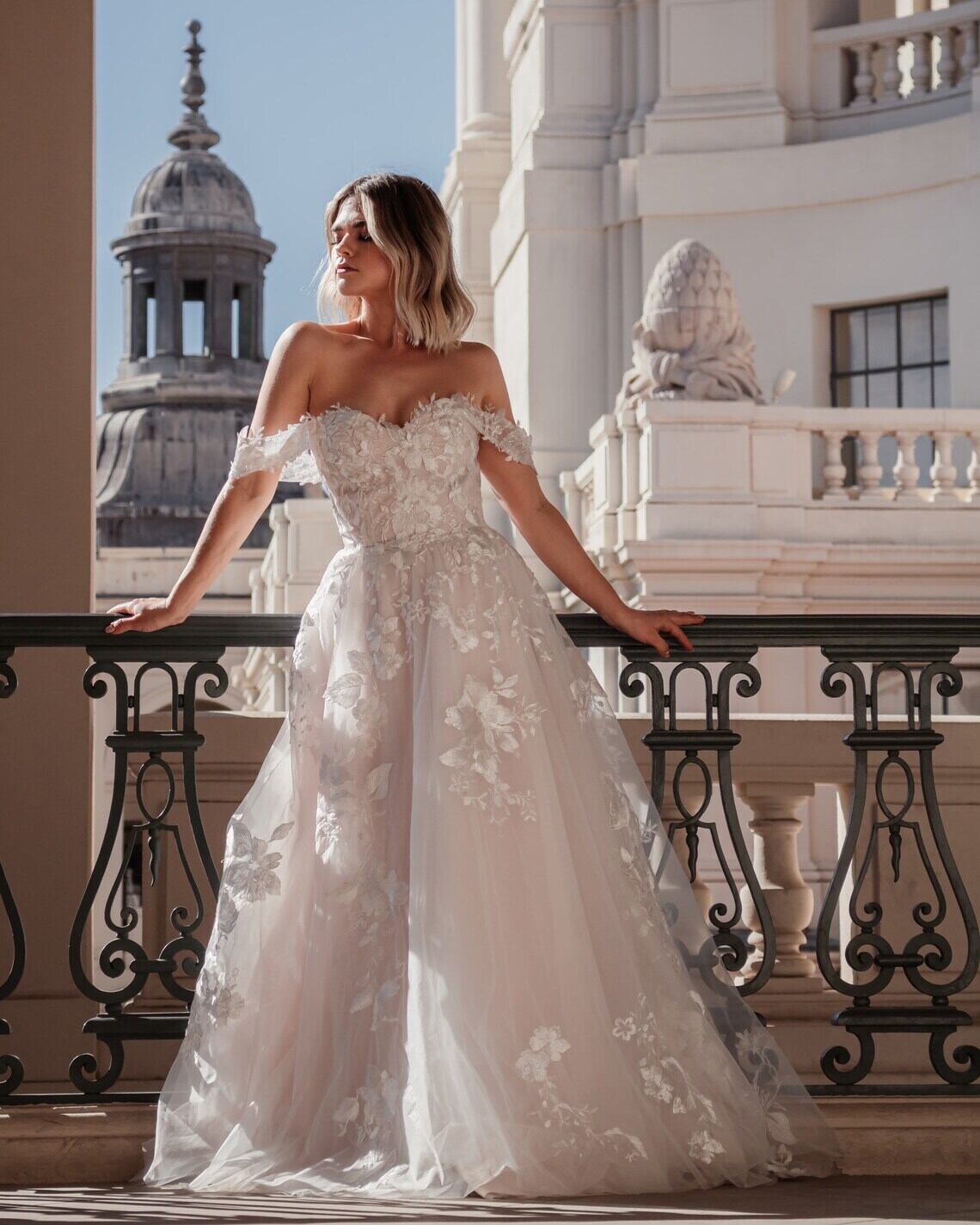 ボタニカル柄のドレス ウエディングドレス レース ポンチョ エレガント 花嫁 編み上げ 結婚式/披露宴