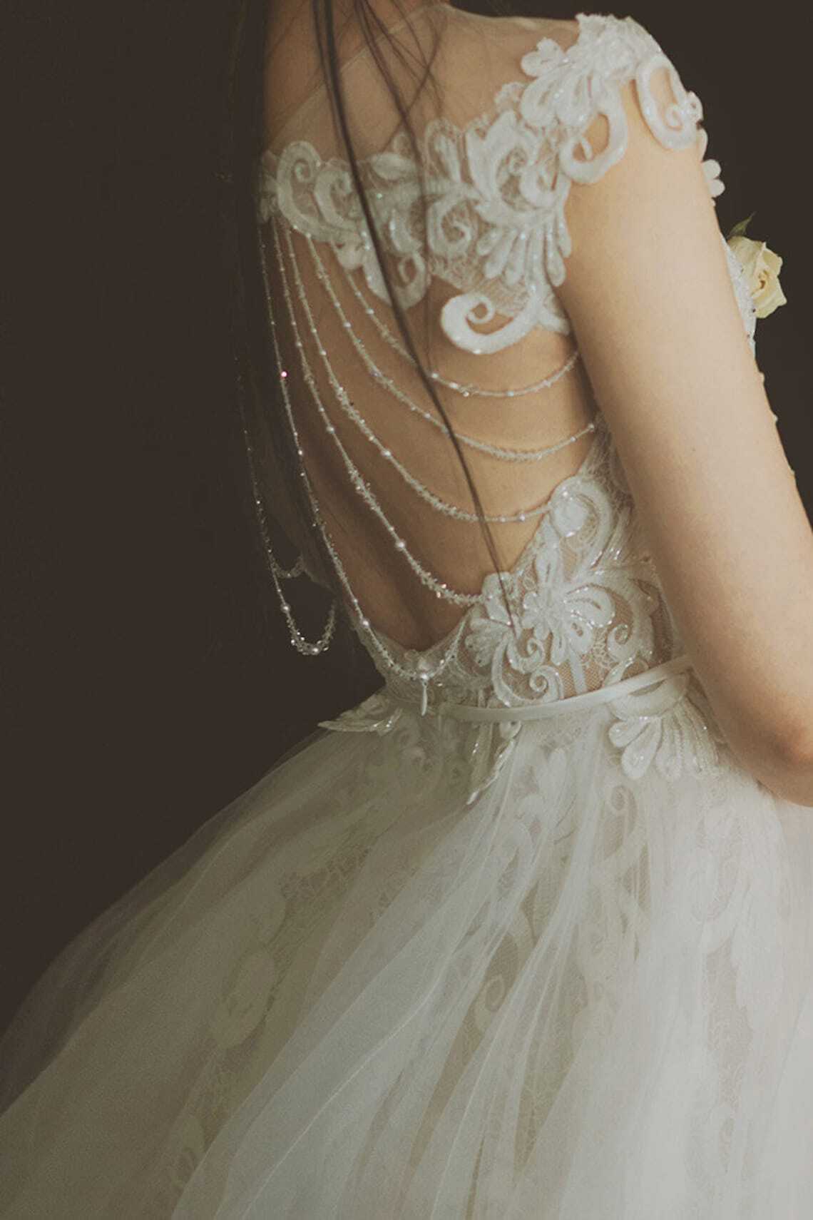 ウエディングドレス レース 背中見せ ソフトチュール エレガント トレーン オフホワイト 花嫁 拳式 結婚式