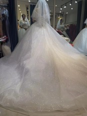人気上昇 ウエディングドレス キラキラチュール リボン 編み上げ ロングトレーン ポンチョ 花嫁 結婚式