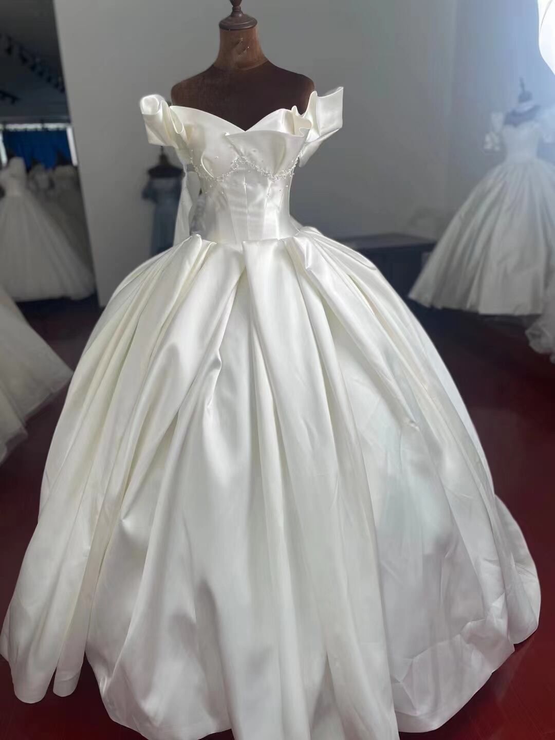 ウエディングドレス パール オフホワイト 結婚式 Aライン ポンチョ サテン 可愛い 編み上げ