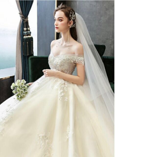 ウェディグドレス マタニティドレス 花嫁 二次会 大きいサイズ レース オフホワイト 編み上げ オフショルダー