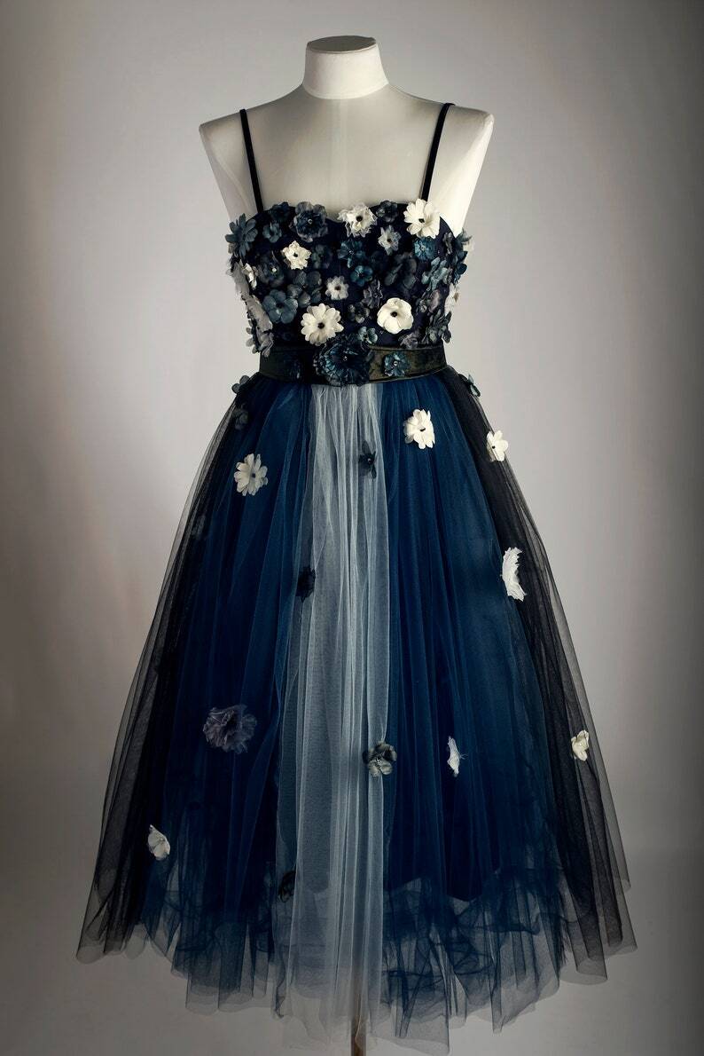 人気上昇! パーティードレス 青 キャミソール 枝花刺繍 可愛い ハンドメイド 前撮り 音楽会