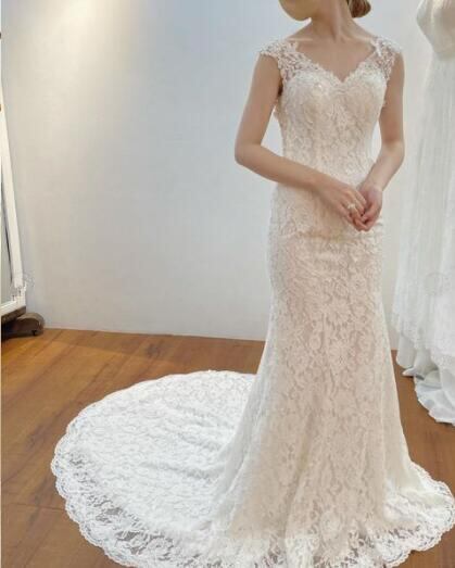 優しい レース 花嫁 パーティードレス マーメイドライン 結婚式 ノースリーブ オフホワイト