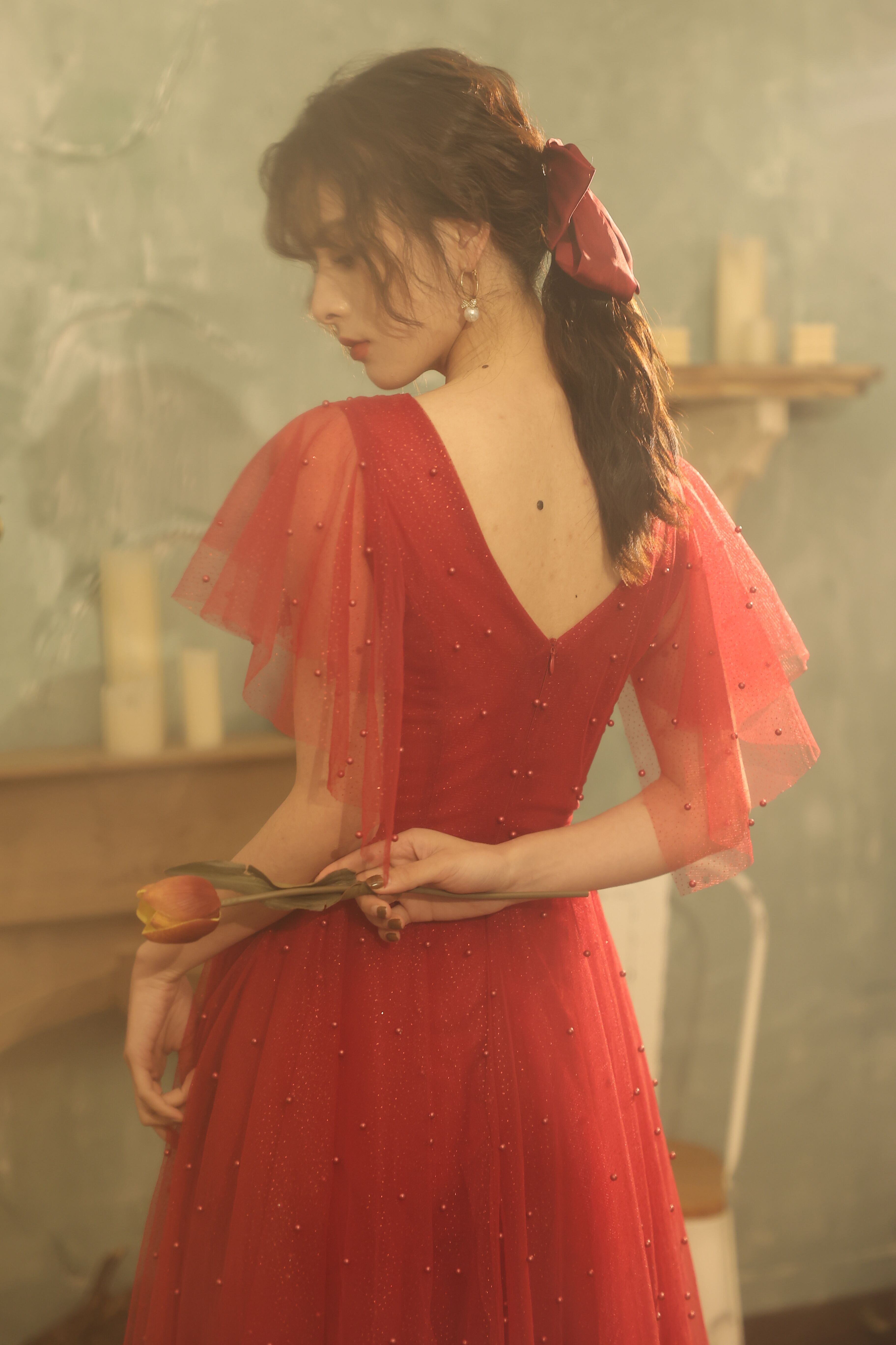 パーティードレス 夜会服 赤 ビジュー ロング ファスナー 演奏会/音楽会