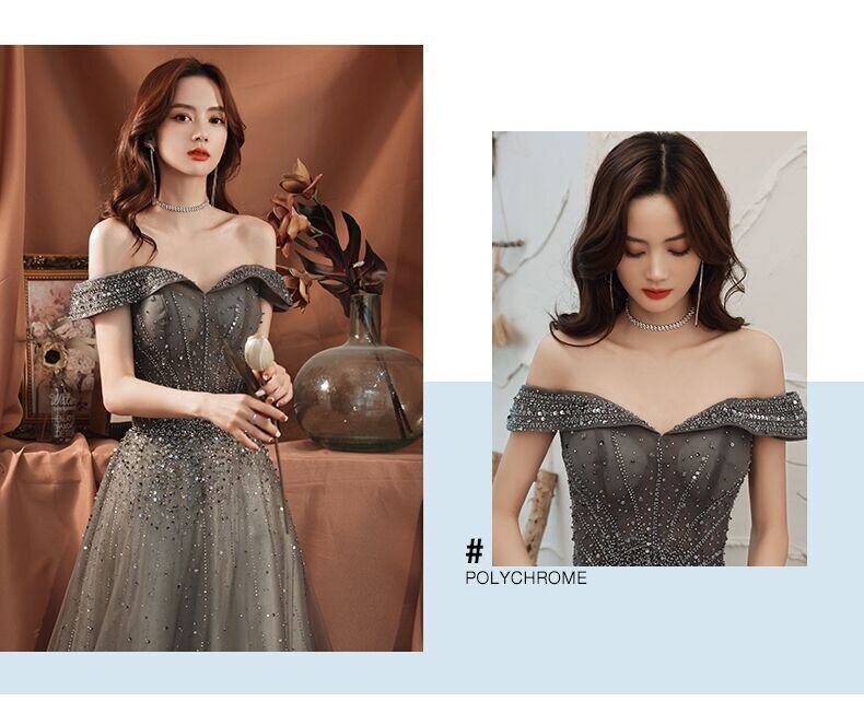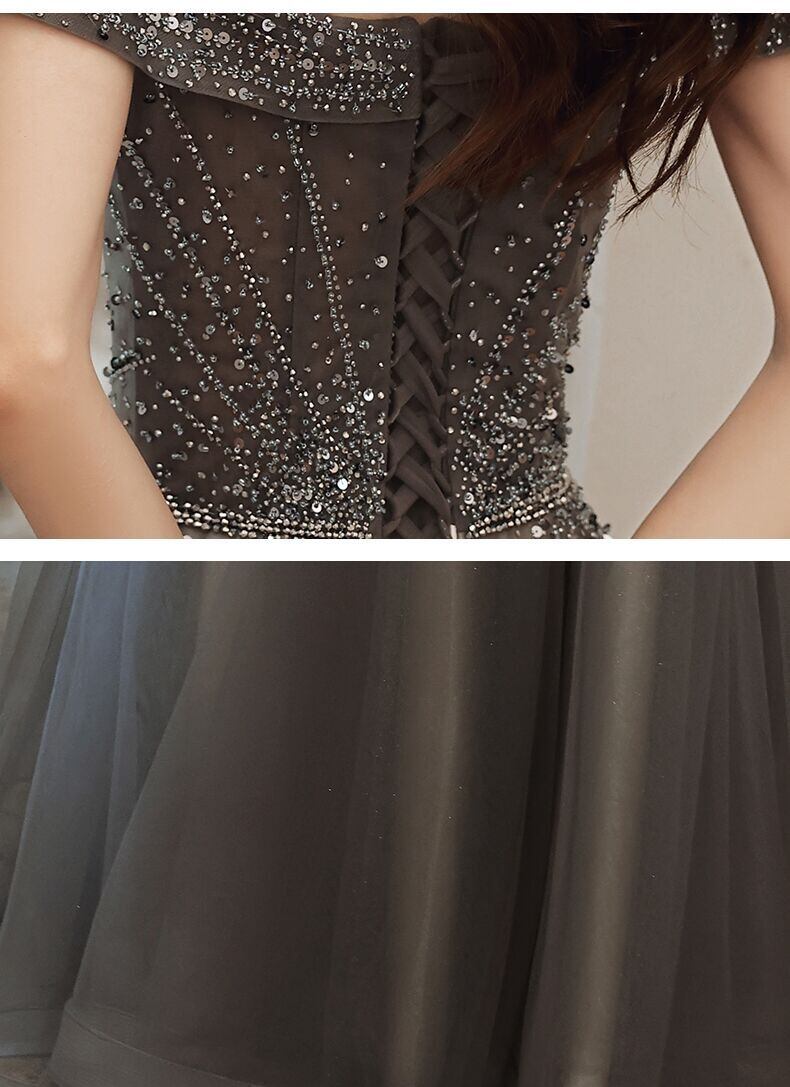 キラキラチュール パーティードレス 夜会服 ショール 編み上げ グレー ビジュー ロング 音楽会/発表会