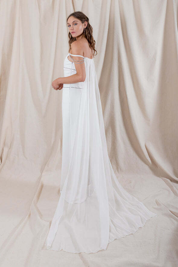 パーティードレス オフホワイト ポンチョ ビジュー スリット エレガント トレーン 花嫁 拳式 二次会