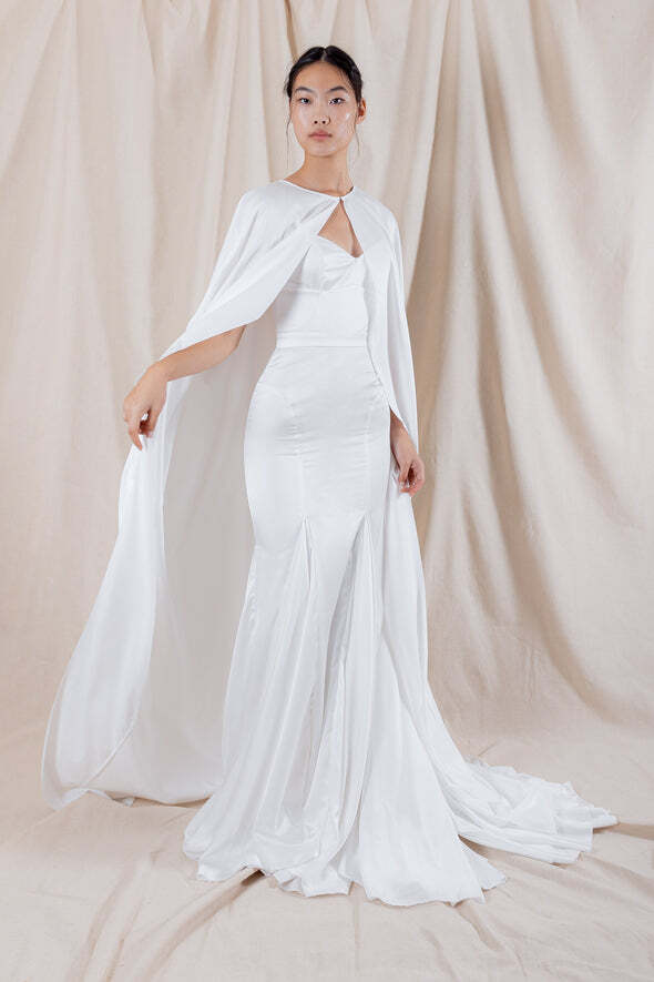 可愛い パーティードレス キャミソール マーメイドライン 二次会 トレーン 背中見せ 花嫁 ファスナー