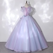 夜会服 可愛い 水色 演奏会/音楽会 編み上げ ラウンドネック Aライン 蝶々 フリル袖