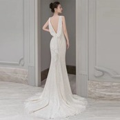 パーティードレス キラキラ キャミソール 背中見せ トレーン マーメイドライン 花嫁 拳式