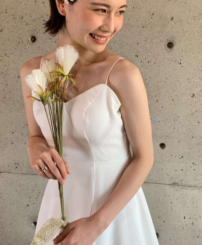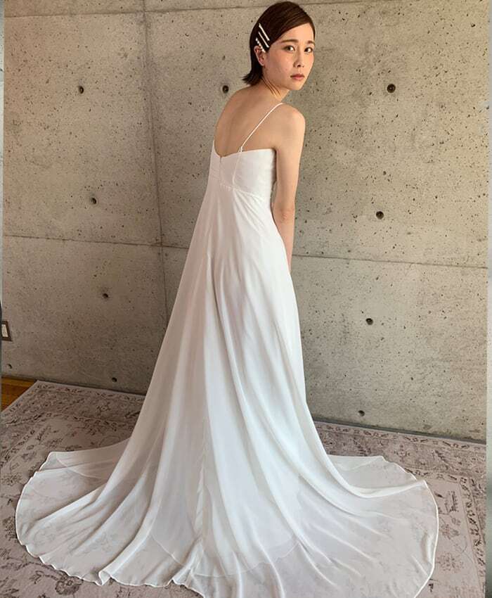 キャミドレス スリット シフォン 前撮り ウエディングドレス 結婚式 挙式 2次会