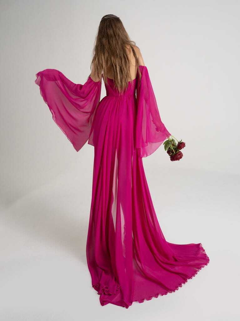 ベアトップ 長袖 ファスナー トレーン パーティードレス ソフトマーメイドライン 二次会 拳式