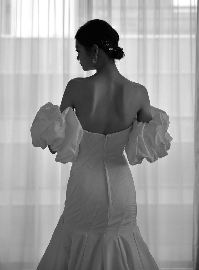 結婚式 ウエディングドレス 可愛い パフスリーブ 取り外し袖 ファスナー 花嫁 ベアトップ