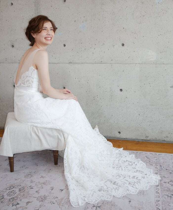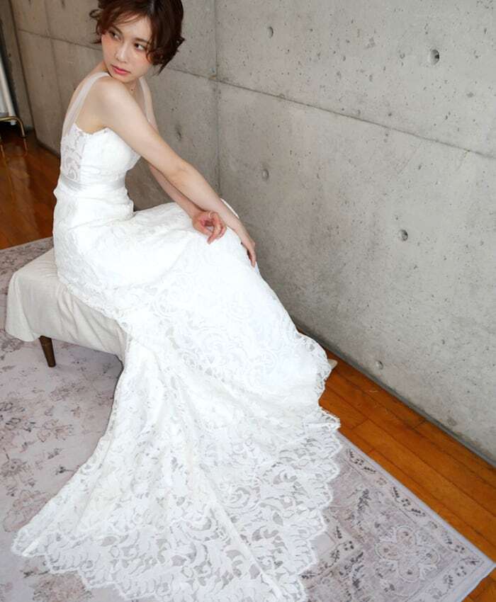 レース エンパイアドレス フィッシュテール オールレース パーティードレス 背中見せ 可愛い 二次会 前撮り