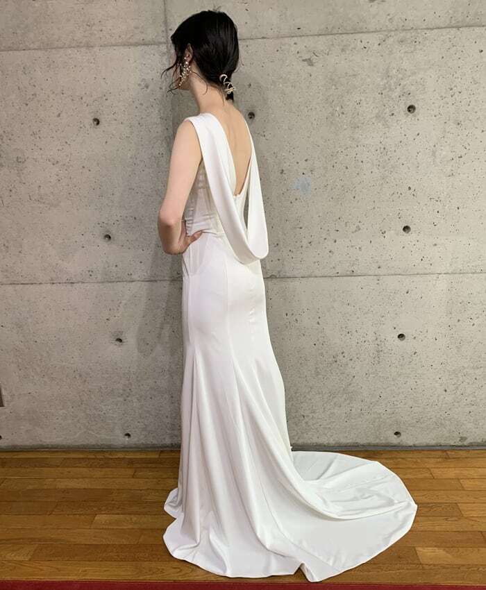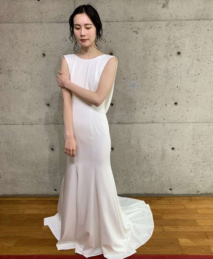 二次会 花嫁 ソフトマーメイドドレス 拳式 オフホワイト シンプル フィッシュテール