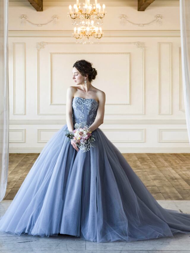 カラードレス ベアトップ 編み上げ レース 花嫁 可愛い プリンセスライン 結婚式/披露宴